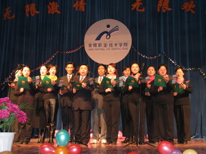 本次晚会节目精彩纷呈,共表演了23个节目,包括舞蹈、演唱、戏剧、小品、相声、武术表演等大家喜闻乐见的文艺形式,广大师生在婉转悠扬的歌声和扣人心弦的游戏中放飞心情,共同表达对新年的良好祝愿。整台晚会场面别开生面,气氛热烈。演出中穿插2次抽奖互动,将晚会不断推向高潮。最后,晚会在《欢乐中国年》的歌声中降下帷幕。(学院办公室)