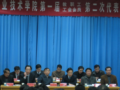 2007年2月26日,新学期开学第一天。为进一步发挥“两代会”的作用,团结动员全体教职工为创建示范高职院校而努力奋斗,学院召开了教职工大会及 “两代会” 一届二次会议。陈传海院长作“学院工作报告”,财务处和工会负责人分别作“财务工作报告”、“工会工作报告”。下午,代表团分组进行讨论,并听取提案办理情况汇报,院党委书记方徽聪作总结讲话。院领导乔德宝、马纯、曹燕出席会议。