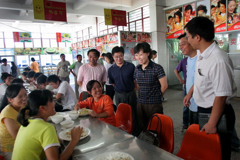 会后,在副院长马纯的陪同下,王宏书记一行来到第二食堂,参观了食堂的就餐环境,了解了饭菜质量等情况,并与同学们共进午餐。(团委)(20070928)