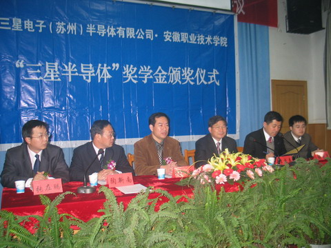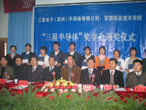 11月15日,亚星游戏网隆重举行第三届“三星半导体奖学金”颁奖典礼。副院长马纯、院有关部门负责人,三星电子(苏州)半导体有限公司总经理方正浩先生、人事部长李成春先生等,以及获奖的师生参加了颁奖典礼。学生处负责人主持颁奖仪式。