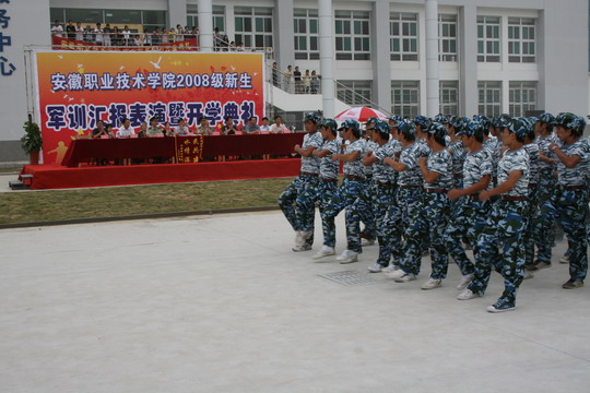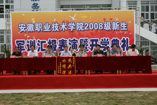 军训汇报表演之后,08级新生开学典礼隆重举行,院长陈传海发表重要讲话。他首先代表学院向武警合肥指挥学院的领导和全体教官表示衷心的感谢;向来自全国各地的近4000位新生表示热烈的欢迎,对同学们圆满完成军训任务表示祝贺;向受表彰的8名教官、8个优秀连队,124名优秀学员表示热烈祝贺!