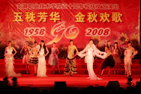 最后师生一道观看了以“五秩芳华,金秋欢歌”为主题的50周年校庆文艺演出。文艺演出共分三个篇章:《欢聚一堂》、《共享和谐》、《团结奋进》,演出以歌舞、评书、诗朗诵、合唱等艺术形式,展示了学院五十年的辉煌历程,激励广大师生以高昂的斗志和年轻的激情开创学院更美好的未来。(新闻宣传办公室 郝进平)