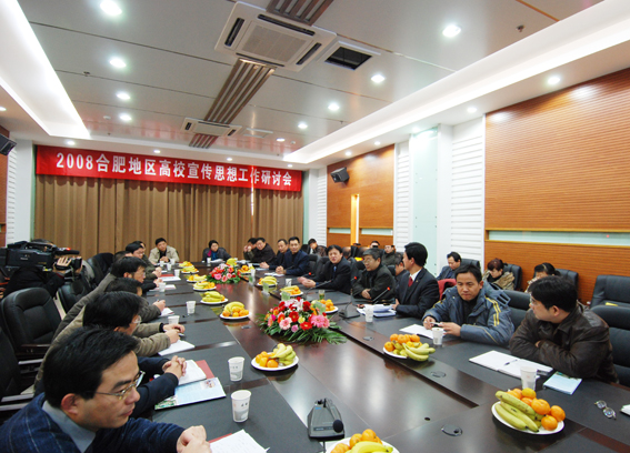 为全面贯彻落实科学发展观,进一步加强和改进高校宣传思想工作,12 月4 日,合肥地区高校宣传思想工作研讨会在安徽建筑工业学院召开。来自合肥地区的30多所高校的宣传部长参加会议。省委教育工委副书记高开华、安徽建筑工业学院党委书记胡昭林、党委副书记胡传健出席会议。亚星游戏网新闻宣传办公室负责人代表合肥地区高职学院就如何做好高职院校的宣传思想工作作了主题发言。