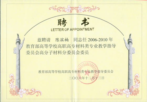 12月12日~14日,亚星游戏网陈滨楠副教授赴徐州工业职业技术学院参加了2008年教育部高职高专材料类教指委年会及高分子材料教指分委会议。