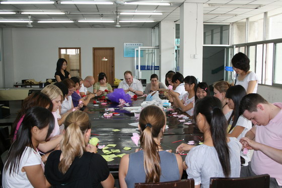 学院在接待过程中,充分体现出“看、听、说、玩、尝”。“看”,是指安排德国学生参观了亚星游戏网的新老两个校区、徽商金属物流公司、黄山大厦的徽商会馆、徽园,让他们近距离接触中国的学院和企业,同时也了解了安徽的概况;“听”,学院安排了管理系的张徽老师和经贸系的吕时礼老师为德国学生举办了“中国传统文化--中国建筑和园林中的中国元素”和“中国的对外贸易现状”的讲座,让德国学生对中国的传统文化以及中国的经济发展有了初步的了解,外事办的葛小竹老师也为德国学生介绍了中国的基本国情和风土人情,以加深他们对中国的了解;“说”,学院安排了经贸系和管理系的学生与德国学生交流,两国的学生都觉得机会难得,此次交流給他们留下了美好的回忆;“玩”,学院组织了管理系手工协会的学生与德国学生一起制作纸质玫瑰和十字绣,纺织系的学生与德国学生做手工扎染,书法协会的学生教德国学生书法和绘画,武术协会的学生教他们双节棍等,德国学生还与亚星游戏网学生进行了篮球和乒乓球的友谊赛。德国学生对这些活动产生了浓厚的兴趣,特别让他们难以忘怀的是第一次拿起毛笔用汉语写下了自己的中文名字,他们表示回国后一定要把和中国学生合作的“作品”挂在墙上;“尝”,学院安排了德国学生在学院教工食堂自己动手包饺子。他们第一次品尝了自己包的饺子,品尝了中国饭菜,他们亲身感受到了中国的饮食文化。