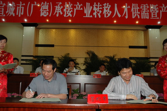为贯彻落实省委省政府大力推进皖江城市带承接产业转移示范区建设的战略部署,使我省高校的人才培养和科研工作更加积极主动地为地方经济社会发展服务,安徽省教育厅、宣城市人民政府与2009年6月11日联合举办“2009年宣城市(广德)承接产业转移人才供需暨产学研项目对接会”。马纯副院长带领就业办人员参加对接会。