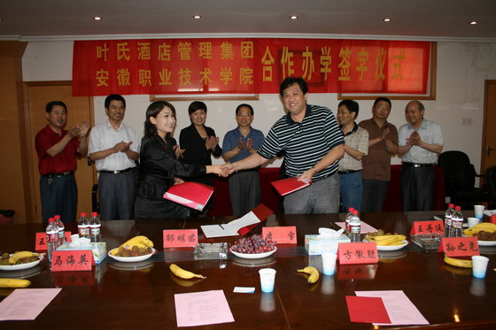 叶氏酒店管理集团是一家五钻餐饮民营连锁企业。该企业有二十多年的经营历史,设施精良,服务优良,在安徽享有很高的知名度,在全国也有一定的名气。颇具特色的创业精神、经营理念和企业文化,支持着该企业不断发展壮大。学院选择叶氏酒店管理集团作为合作伙伴,意将民营企业独特的经营理念和企业文化移植到旅游、酒店管理专业的教育教学中,培养企业、社会需要的人才,促进我校旅游、酒店管理专业的进一步发展。(管理系 洪彩如)