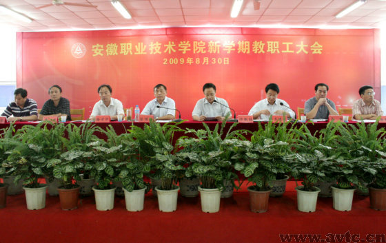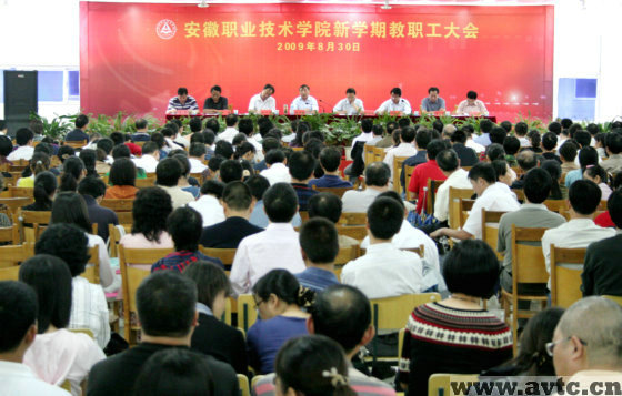 院党委书记方徽聪发表重要讲话。他指出,在全院工作重心转移到新校区以后,要努力在新起点上实现新跨越,希望全体教职工要增强“四个意识”。即增强示范意识,人人争做国家示范校的建设者、代言人;增强忧患意识,查找不足,赶超进位;增强抢抓机遇意识,加快发展;增强质量意识,千方百计,扎扎实实抓好教学质量。把握好“新、高、实、特、稳、升”六个关键字。新:即工作要有新思路、新举措。高:即各项工作要坚持高标准,努力打造国家示范校的高品质。实:要求真务实,扎扎实实做好本职工作。特:即是进一步梳理办学特色,以特色打造学院品牌。稳:即是进一步做好安全稳定工作。升:即是提升质量、提升声誉、提升办学层次。要弘扬“五种精神”。一是弘扬改革创新的进取精神。二是弘扬淡泊名利的奉献精神。三是弘扬忠于职守、认真负责的敬业精神。四是弘扬开明豁达的宽容精神。五是弘扬以校为荣、同舟共济的团队精神。方徽聪满怀热情地指出,学院的目标已经制定,我们的事业开始了新的航程,大家要齐心协力、开拓进取,以优异的成绩向国庆六十周年献礼!