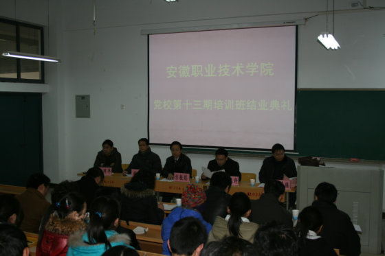 元月11日下午,院党校第十三期培训班结业典礼在院电教楼203举行。院党委书记、院党校校长方徽聪,院党委副书记、党校副校长徐振轩,院工会主席、党校校务委员姚新华,院团委书记、党校校务委员张在腾及各系部党总支书记、党校辅导员出席了结业典礼。本期培训班240多名学员代表参加了典礼。院新闻宣传办主任、党校副校长胡辉平主持了结业典礼。