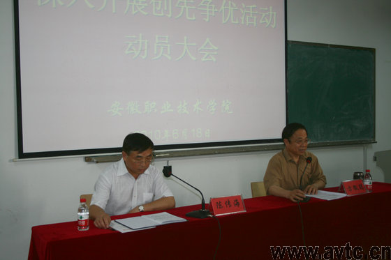 6月18日下午,学院组织召开创先争优活动动员大会。学院深入开展创先争优活动领导小组及办公室全体成员,各党总支、党支部委员,中层以上党员领导干部,学生党员代表参加会议。院党委书记、院创先争优活动领导小组组长方徽聪作动员报告,院党委副书记、院长、院创先争优活动领导小组副组长陈传海主持会议并讲话。