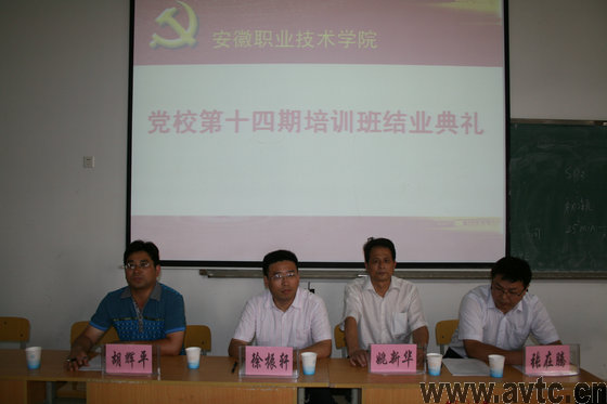 6月23日下午,院党校第十四期培训班结业典礼在电教103教室举行。院党委副书记、党校副校长徐振轩,院党委委员、工会主席、党校校务委员姚新华,院团委书记、党校校务委员张在腾、材料系党总支书记、分党校校长叶鸽,电气系党总支书记、分党校校长黄琪,管理系党总支书记、分党校校长吴自强,化工系党总支书记、分党校校长陈纲出席会议。各分党校辅导员及本期培训班200多名学员代表参加了会议。结业典礼由院宣传办主任、党校副校长胡辉平主持。