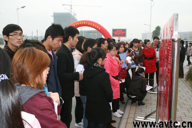 11月21日,阳光明媚,学院新校区内气球、彩旗、彩虹门上欢迎招聘单位的横幅随风飘荡,招聘现场人头攒动,一片热闹景象。这天,学院成功举办了第七届校园招聘会,这也是学院在新校区首次举办大型招聘会。奇瑞汽车股份有限公司、、合肥联亚制衣有限公司、安徽华茂集团、福大自动化上海分公司、联合利华(中国)有限公司等160多家用人单位带着约5000个岗位到校招聘。约有4000多名毕业生参加了招聘,招聘会一直持续到下午5:30。大约有400多名毕业生和单位签署了就业协议,达成就业意向的约有3000多人,成效显著。