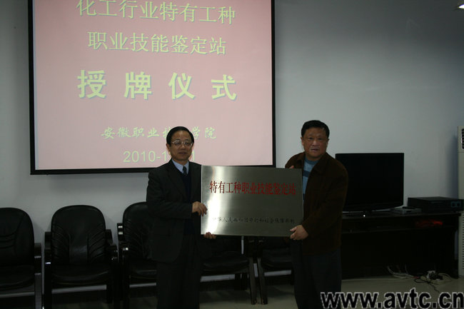 院党委书记方徽聪发表了热情洋溢的讲话,他说今天是个值得高兴和记住的日子,国家化学工业技能鉴定中心把设立在省石油化工协会的化工行业特有工种职业技能鉴定站的职能授予学院,是对学院化工实训基地条件的充分肯定,是对学院提高人才培养质量的促进,为学院加强与行业企业的合作搭建了很好的平台,希望化工系在化学工业技能鉴定中心的领导下,在安徽省石油化学工业协会的指导下,把化工行业特有工种职业技能鉴定工作很好地开展起来,为安徽省乃至全国化工行业企业培养更多更高质量的技能人才。