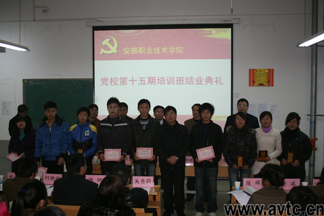 12月23日下午,院党校第十五期培训班结业典礼在电教102教室举行。院党委副书记、党校副校长徐振轩,院党委委员、工会主席、党校校务委员姚新华,院财务处处长、党校校务委员郑国,院团委书记、党校校务委员张在腾,材料系党总支书记、分党校校长叶鸽,电气系党总支书记、分党校校长黄琪,纺织系党总支书记、分党校校长陈辉,管理系党总支书记、分党校校长吴自强,化工系党总支书记、分党校校长陈纲,机械系党总支书记、分党校校长何晓皖,信息系党总支书记、分党校校长潘瑞春,继续教育学院院长王进明出席会议。各分党校辅导员及本期培训班200多名学员代表参加了会议。结业典礼由院宣传办主任、党校副校长胡辉平主持。