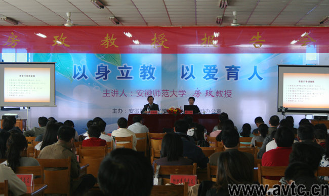本网讯(宣传办 汪煦 思政教学部 方希) 为进一步将学院创先争优活动引向深入,弘扬高尚的师德师风,学院特邀安徽师范大学政法学院房玫教授为全院教职员工举行报告会。报告会于5月25日下午在学院综合服务中心三楼举行,学院党委书记、院创先争优活动领导小组组长方徽聪主持报告会。院领导马纯、曹燕、徐振轩、李雪,学院各处室和各系部行政人员,辅导员、班主任及没有授课任务的教师一共三百多人聆听了报告会。