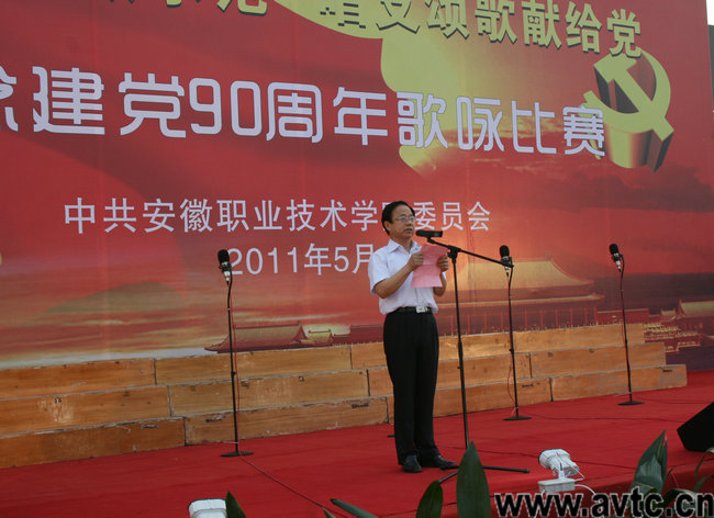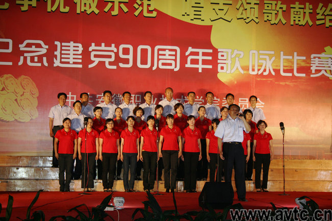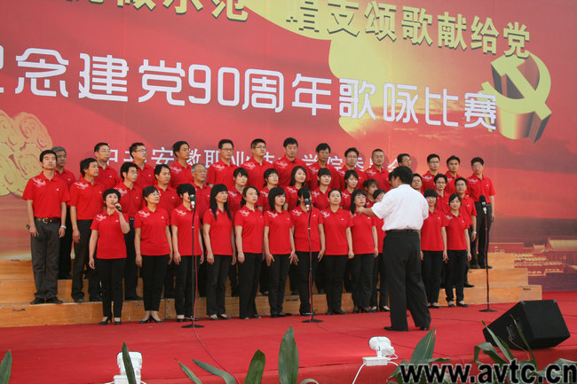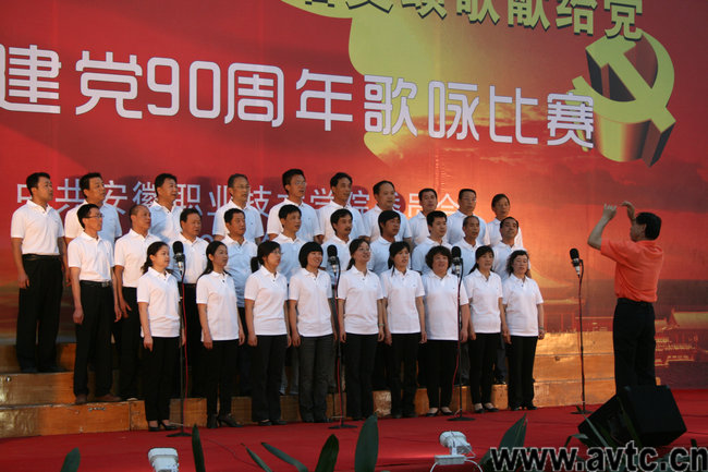 本网讯(院记者团记者 方蕾) 九十年风雨兼程,九十年历经沧桑,九十年创造辉煌。在中国共产党即将迎来九十岁生日之时,5月27日下午6点,亚星游戏网“庆祝建党90周年”系列活动之“创先争优做示范,唱支颂歌献给党”歌咏比赛在学院运动场举行。来自学院13个党总支代表队参加了角逐,每支队伍自选二首红歌参加比赛,为庆祝建党90周年献上了一份厚礼。院领导方徽聪、陈传海、乔德宝、马纯、曹燕、徐振轩、李雪莅临现场并作为各自创先争优联系点合唱队的一员参加了本次比赛。比赛邀请合肥学院、安徽广播影视学院、合肥幼儿师范高等专科学院的专家担任评委。