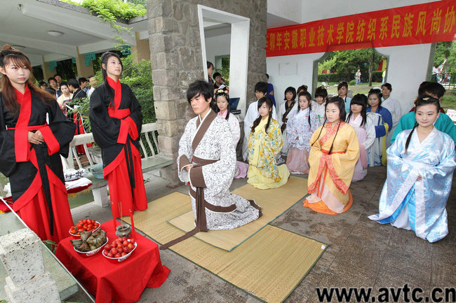 本网讯(纺织系通讯员 刘桂芬) “节分端午自谁言,万古传闻为屈原”。6月6日(辛卯年五月初五)上午8:30,一场特别的端午祭祀活动在逍遥津公园举行,学院民族风尚协会30名同学着汉服、行周礼,进行了一次传统文化的生动展示以祭祀屈原。学院宣传办主任胡辉平、院团委副书记李瑞勇、纺织系党总支书记陈辉、曾宪锋等老师参加了本次活动。安徽日报、合肥日报、合肥电视台、安徽商报、中安在线、合肥在线记者对本次活动进行了专访。