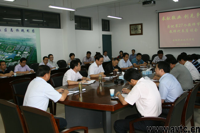 院长陈传海在会议上致辞。他代表院领导班子向各位与会教师并通过大家向辛勤工作在各自岗位上的全院教职员工致以节日的问候,对多年来为学院各方面发展做出贡献的各位教师表示衷心的感谢。他在简要回顾了学院办学历史和取得的各项成就后指出,学院的发展得益于国家经济社会又好又快发展的大好形势,得益于国家大力发展职业教育的良好机遇,得益于上级部门对学院的关怀和支持,更得益于广大教师的努力奋斗。学院的每一项荣誉都凝聚着广大教师的辛勤汗水。他展望了学院“十二五”发展前景,希望广大教职员工继续发扬团结奋发的精神,不断努力取得更大的成绩。他对全院教师提出了三点希望:一是要牢固树立教师的职业素养,改进育人方法,努力培养中国特色社会主义事业合格建设者和可靠接班人;二是要不断学习,丰富自己的知识,努力提高业务水平和能力;三是要不断进取,不断创新教育观念,创新教育教学方法,做职业教育改革的先锋。