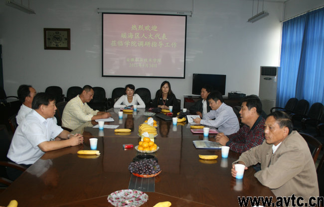 本网讯 (院办通讯员 傅峙)9月30日,瑶海区人大代表来学院调研职教基地建设情况。院领导方徽聪、陈传海、徐才华以及相关部门负责人热情接待了代表团一行。