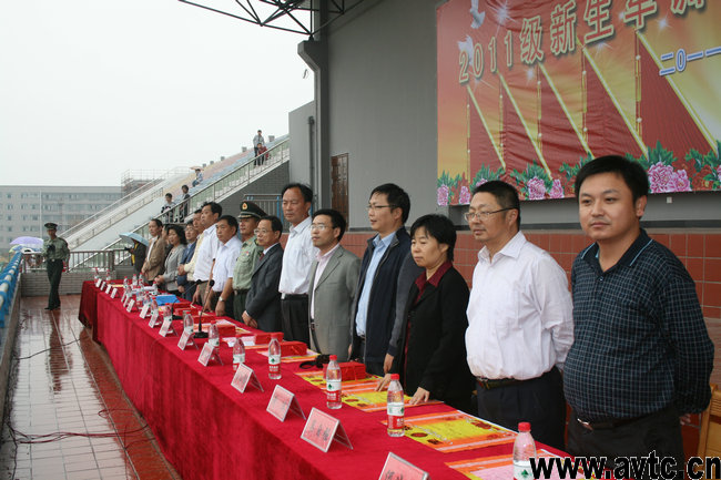 下午15:00时,2011级新生开学典礼在激昂的国歌声中拉开序幕,全体师生注目五星红旗冉冉升起,老生代表郭龙翔、新生代表陆文军先后发言。