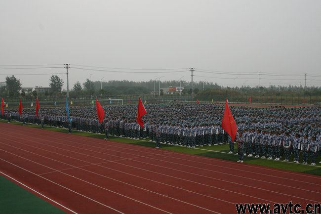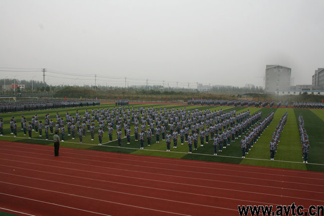 本网讯(宣传办 郝进平) 丹桂竞飘香,少荃舞轻纱。9月30日下午14:00,亚星游戏网2011级全体军训新同学身着统一的迷彩军装,伴着蒙蒙细雨,踏着雄壮的军乐,精神抖擞地来到田径场,参加即将举行的军训汇报表演暨开学典礼。