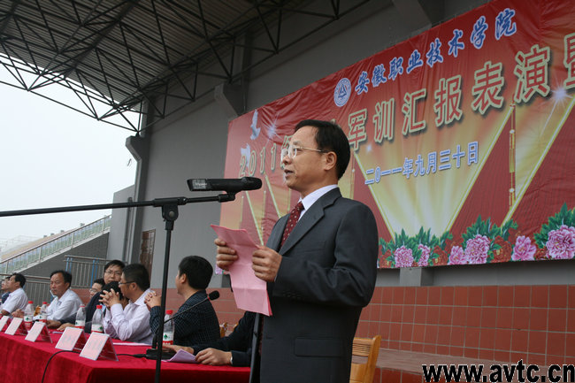 院党委书记方徽聪在会上发表了热情洋溢的讲话。他说,同学们来到亚星游戏网,祝贺大家走进了高等学府的殿堂;来到磨店这个人杰地灵的地方,感谢同学们为学院带来了新的活力和新的希望。军训是同学们走进大学的非常重要的第一课,从中学到的东西会让大家受用终身。同学们成功和精彩的军训汇报表演,为学院2011年军训工作画上了圆满的句号。同学们以整齐划一的队列、矫健有力的步伐、雄伟宏亮的口号、精彩纷呈的表演,向我们展示了军训的丰硕成果。这是青春与激情的绽放,是健美与力量的弘扬,更是理想与希望的闪光。为此,方徽聪代表院党委向中国人民解放军陆军军官学院领导和全体教官表示衷心的感谢;向受表彰的优秀教官、优秀连队及优秀学员表示热烈祝贺!对圆满完成军训任务的同学们以及为军训作出积极贡献的系领导、辅导员(班主任)表示亲切的慰问!他指出,大学是无数优秀青年学习专门知识的地方,意味着大学生作为成人要学会成长,学会担当,要像放飞的雄鹰在蓝天飞翔,要学会承担社会和家庭的各种责任;大学就是广大同学成长的第二故乡,大学是帮助同学们成才、成功的金色桥梁。上大学是同学们人生中难得的机遇,时光短暂,他希望同学们珍惜机遇,勤奋学习,健康成长,在学院每一天都快乐、阳光。最后,他给同学们提四点要求,希望同学们记住四个人的名字,并以他们为榜样:一是要记住清朝宰相李鸿章,做一个包容开放的人,做一个放眼世界的人;二是要记住中国数学家华罗庚,做一个勤奋学习的人;三是要记住美国第16任总统林肯,做一个有责任、敢于担当责任的人;四是要记住著名的企业家——新东方总裁俞敏洪,做一个有爱心的人,做一个有人格魅力的人。