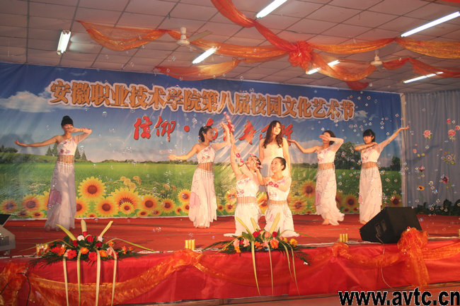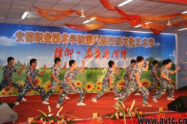 闭幕式后的文艺演出精彩纷呈,形式多样,有充满阳刚活力的开场军体拳表演,有地道动听的黄梅戏选段,有风趣幽默的小品表演等,院学生合唱团的《乐扬青春》更是将晚会的气氛推向高潮。