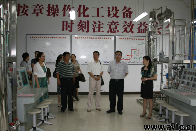 座谈会后,考察团先后参观了电气系、化工系和纺织系实训室。