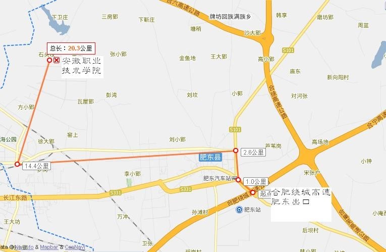从合肥绕城高速(肥东出口)下,向右经省道S331到包公铜像向右转上省道S101,在第三个红绿灯处向左转----“振东大道”(又称包公大道)一直向西至(园上园住宅小区附近)右转向北---上“文忠路”(又称合磨路)一直向北约5KM。