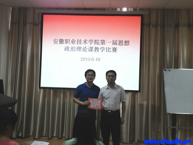 比赛采取现场讲课和现场答疑两种形式进行。参赛教师从《思想道德修养与法律基础》和《毛泽东思想和中国特色社会主义理论体系概论》两门思政课相关章节中自选15分钟的教学内容进行现场讲课;随后,由评委提前出题,参赛教师抽签,对抽中的问题进行5分钟的现场解答。经过2个多小时的紧张角逐,评委从教案、教态、教学组织、教学手段、现场答疑等方面进行量化评分,最终,方希老师获得一等奖,他将代表学院参加全省高校思想政治理论课教学比赛。