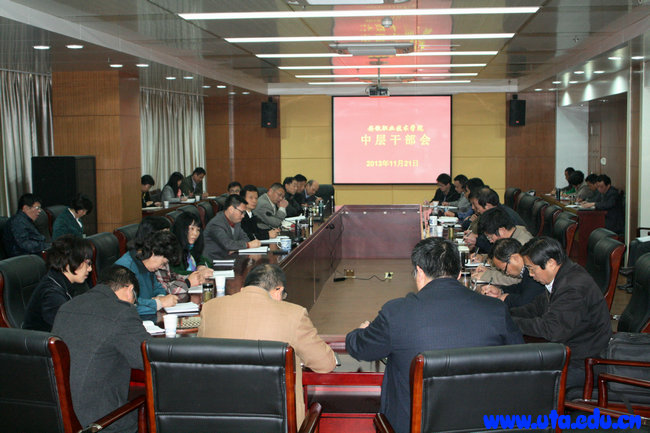 本网讯(院办公室通讯员 傅峙) 11月21日,学院召开中层干部会议,部署学院近期工作。院领导亓四华、徐振轩、史锋、陈行以及正科级以上中层干部参加会议。院党委副书记徐振轩主持会议。