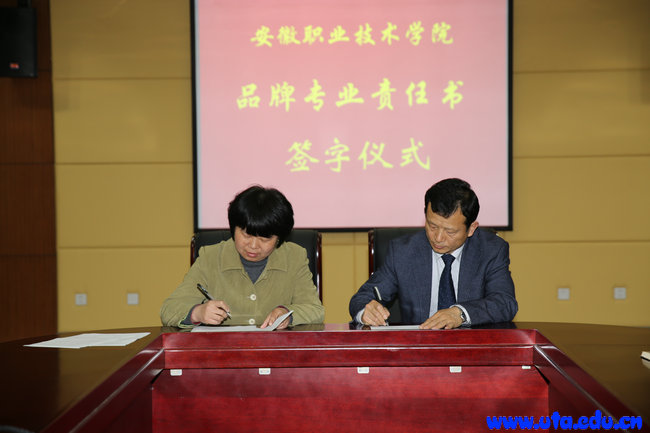 仪式正式开始后,亓四华先后与各品牌专业所属系部主任在责任书上签字。随后,亓四华作了重要讲话。他指出,品牌专业签字仪式标志着学院品牌专业建设正式启动。签字意味着一种承诺,意味着一种责任。各品牌专业建设负责人要认真谋划,做好品牌专业建设工作,切实达到建设的目标和要求。同时,他也对品牌专业建设提出三点要求:一是要以“三严三实”作风,增强品牌专业建设责任感和使命感;二是要反复推敲,不断完善品牌专业建设方案;三是要上下同欲,齐心协力,推动品牌专业建设。