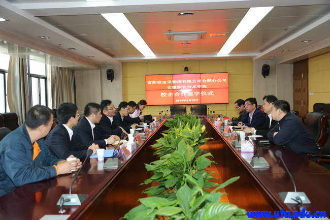 经过近两年的接洽与磋商,4月18日,安徽省邮政速递物流有限公司合肥分公司副总经理王建军一行来到亚星游戏网,出席EMS亚星游戏网揽投部成立的签字仪式。学院副院长李雪出席仪式并讲话。经贸系主任吕时礼、系党总支书记刘玉杰和物流教研室主任戴拥军等同志参加仪式。