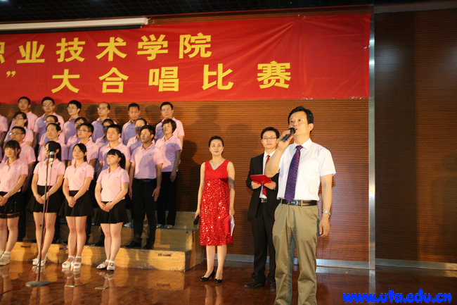 本网讯(宣传部 丁琦)为促进学院精神文明建设,推动校园文化的发展,抒发广大师生员工对党、对祖国的无比热爱之情,5月28日下午,学院工会、办公室、党委宣传部、团委联合在学院图书馆三楼学术报告厅举办了主题为“民族魂•中国梦”的“红五月”大合唱比赛。学院领导亓四华、徐才华、徐振轩、李雪、史锋、陈行、蒋永忠观看了比赛,学院各党总支共派出13支队伍参加比赛。每位院领导作为教学系部党总支的联系人参加了各自所联系的教学系部党总支的比赛。学院院长亓四华宣布比赛正式开始。