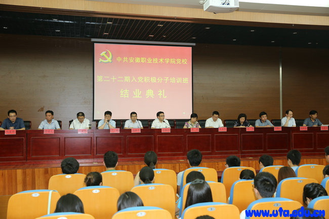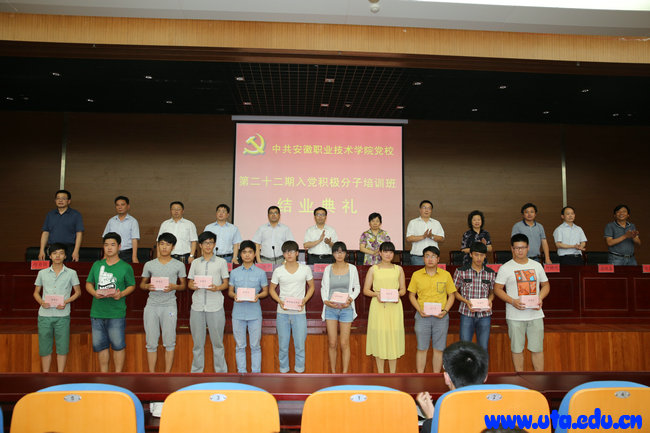 典礼在庄严的国歌声中拉开帷幕。院团委书记张在腾通报了院党校第二十二期入党积极分子培训班结业考试成绩情况,党委宣传部部长胡辉平宣读了《关于表彰院党校第二十二期培训班优秀学员的决定》,与会领导分别给学员代表颁发了结业证书、给优秀学员颁发了荣誉证书。随后,铁道学院铁运1321班桂啟锐同学代表优秀学员上台做了发言。他代表广大学员表示将以本次培训为契机和起点,在今后的学习和生活中更加严格要求自己,努力按照一名党员的标准来规范自己,处处起到先锋模范作用,不断努力,继续拼搏,为早日加入中国共产党而努力,为实现美丽安职梦贡献自己的青春力量!