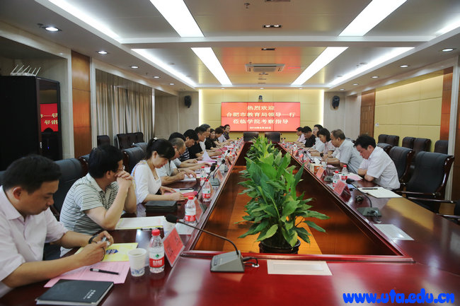 本网讯(院办公室通讯员 郝进平) 6月30日,合肥市教育局职成处副处长戈弋率合肥经贸旅游学院筹备组领导裴罕、文侠等一行14人来亚星游戏网交流考察。副院长史锋热情接待了客人,学院各相关职能部门负责人参加接待。