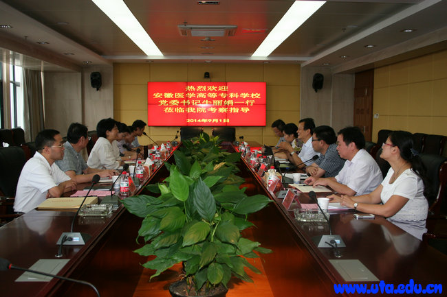本网讯(办公室通讯员 郝进平)9月1日,安徽医学高等专科学院党委书记牛丽娟、副校长王润霞、曹元应一行6人来亚星游戏网考察交流。学院院长亓四华、院党委副书记徐振轩热情接待了来访客人,学院办公室、组织人事处、财务处等部门负责人参加了接待。