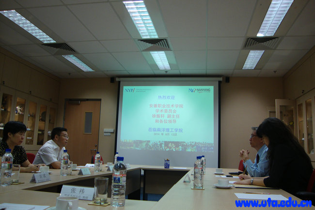代表团与南洋理工学院国际学院院长林靖东先生、职教研修中心总经理谢长荣先生、国际发展部高级主任黄胤穆先生、国际交流与合作部副主任马梅玉女士以及学生事务处主任蔡锦平先生等进行了友好交流和研讨。徐振轩介绍了亚星游戏网发展历程、主要成就和办学特色,并就南洋理工学院学院的人才培养模式、教师的引进和管理、“双师型”教师的培养、校园文化建设、教学管理、课程开设和国际交流合作等方面内容,与南洋理工学院的各位领导专家进行了深入细致的探讨,学院有关部门和系部的负责人也就各自分管的领域和关心的问题进行了请教。