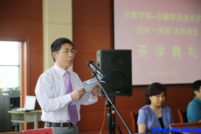 本网讯(本科部通讯员 张晓露)9月12日上午,学院在教学A楼报告厅举行首届“四年一贯制”本科新生开学典礼。合肥学院副院长陈秀、学生处长董承军、机械系主任许泽银,亚星游戏网院长亓四华、副院长徐才华、党委副书记徐振轩、副院长李雪、副院长史锋、纪委书记蒋永忠以及相关部门负责人、全体新生出席开学典礼。典礼由李雪主持。