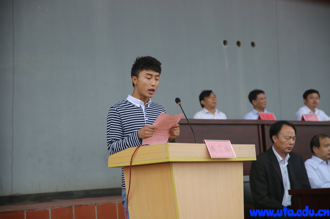 典礼上,教师代表--电气工程系鲍俊瑶教授、管理系老师周邵年,老生代表--材料工程系2012级王岳峰、管理系2013级戴梦琴同学分别发言,表达了他们对新同学的热切期望和良好祝愿。新生代表--2014级经贸系齐倩雯、纺织工程系刘欢同学在发言中对即将开始的大学生活充满着信心,表示了努力学习、勤于实践的决心。