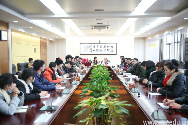 本网讯(宣传部 李彦)2015年1月15日中午,学院讲解员培训总结会议在学院九楼会议室召开。学院党委副书记徐振轩出席会议并讲话,学院宣传部部长胡辉平、宣传部有关老师及学院全体讲解员出席会议。