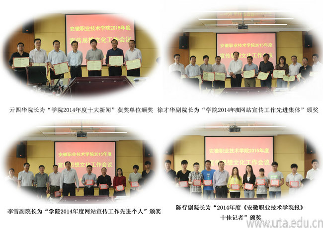 会上,院领导亓四华、徐才华、李雪、陈行分别给“学院2014年度十大新闻”获奖部门、2014年度学院网站宣传工作先进集体和先进个人、2014年度《亚星游戏网报》十佳记者颁发了获奖证书。