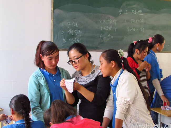 上好每堂课。支教期间,宿伟老师根据学院安排,担任14级服装双语班《服装结构制图》和《服装裁剪缝纫工艺》课程的教学任务。教学工作上,她始终做到“课前多方查阅资料、认真备课,课中与学生多交流沟通,课间虚心听取服装及相关专业教师和学生的听课意见,课后及时反思整理”,从不迟到、不早退,按时按质上好每节课,并及时处理教学中出现的难题,多方与该校教师探讨“学生难教”、“课堂纪律管理”等方面的难题。针对民族学生汉语水平较低的情况,宿伟老师还在教学中还积极采用视频、图片等辅助教学手段,大量制作服装实物,让学生从直观和感性上首先对服装有所了解,从而产生更多的学习兴趣,使民族学生能够看得懂、学的明白。