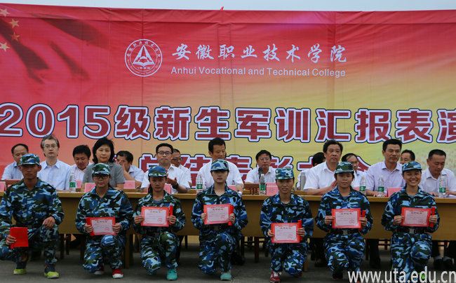 会上,院党委副书记徐振轩宣读了学院“关于表彰2015级新生军训工作先进集体和先进个人的决定”。学院领导分别向13个优秀连队、13名优秀教官、130名优秀学员颁发了锦旗和证书。