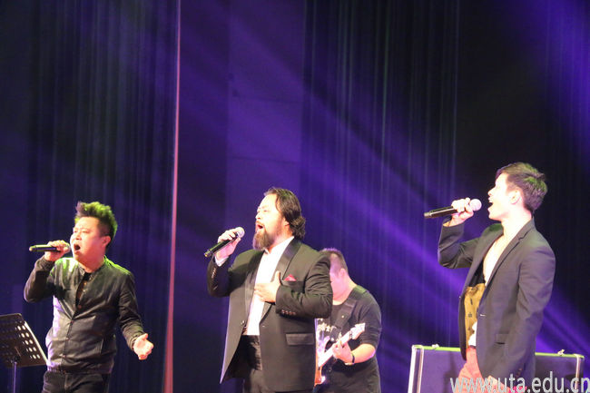18点整,大学生活动中心流光溢彩,霓虹闪烁,在古典乐器与现代乐器结合下新民乐《加勒比海盗》拉开了序幕。舞台上,灯光随节奏闪烁,舞台下听众随音乐摇摆。音乐会将民乐与电声乐结合,美声和通俗搭配,既有中外名曲,也有原创歌曲。轻快浪漫的萨克斯独奏《Take Five》,富有安徽特色的新黄梅歌《山野的风》,女生组合深情演绎《她说》等歌曲,节奏感极强的原创摇滚乐《无所顾忌》,轻松的流行说唱《Crazy》等精彩节目,时而喧嚣激昂铮铮跳跃,时而柔媚婉转低吟浅唱,时而激越迸发金鼓齐鸣,时而万籁俱寂烟消云散,无不张扬着青春与活力。在歌曲《爱是永恒》中,演唱者叶托利连续四次高音,引得全场掌声雷鸣。身着白底蓝花礼服的“徽姑娘”组合带来女生四重唱《小河淌水》、《对话》,轻柔悠扬,古典与流行结合,别有一番风味。在二胡悠长的乐声中,李卓的《九儿》,凄凉婉转,感人至深。著名美声音乐家闫晓光带来独唱《今夜无人入睡》,用他的嗓音浑厚极富穿透力,使晚会气氛达到高潮。音乐会在《我爱你中国》的合唱中落下了帷幕。炫动的音符,飞扬的旋律,高亢的歌声,优美的舞步,给观众带来精彩绝伦的音乐视听享受。