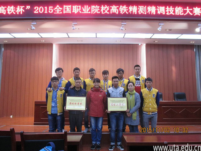 本网讯(铁道学院通讯员 喻言)2015年10月31日至11月2日,由全国铁道职业教育教学指导委员会主办的“南方高铁杯”2015年全国职业院校高速铁路精测精调技能大赛在山东省济南市山东职业学院隆重举行。亚星游戏网铁道学院派出的两只代表队分别获得团体总分特等奖和二等奖、CPⅢ控制网高程测量项目二等奖、工程施工(铁路曲线)放样项目三等奖以及轨道精测精调项目二等奖的好成绩,其中铁道学院2队成功地从全国众多好手中脱颖而出,高居三个单项成绩总分排行榜第一名,获得特等奖。