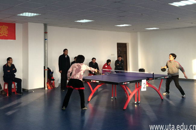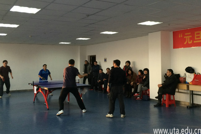 本网讯(院工会通讯员 贾亮亮)12月26日,学院第九届“元旦杯”乒乓球团体赛在办公楼八楼活动中心顺利举行。院党委副书记徐振轩亲临现场观摩比赛,为队员们助威加油。