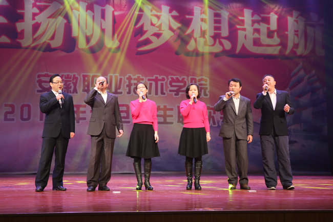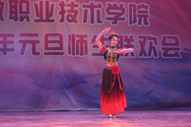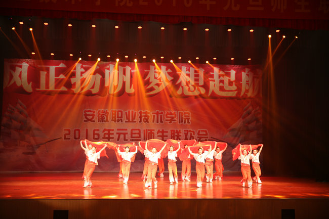 联欢会以“风正扬帆,梦想启航”为主题,分为“忆往昔峥嵘岁月稠”、“看今朝旖旎风光秀”、“创未来辉煌安职梦”三个篇章。联欢会在大学生艺术团乐队带来的一首动感摇滚乐《离开地球表面》中拉开了序幕。一舞火热《红旗颂》,再现了革命年代的光辉岁月,让人热血沸腾;赵剑章老师演唱的民谣《南山南》,饱含深情,触动了在场每个人的心弦;陈玮玮老师表演的舞蹈《花儿什么这样红》,动作优美娴熟,舞姿曼妙欢快,台下热烈的掌声经久不息;纺织服装系为我们带来了一场别开生面的《模特T台秀》,同学们身着自己设计的精美服装,迈出自信坚定的步伐,展现出青春的活力与朝气,让人仿佛置身于时装秀的现场;时珉等老师表演的小品《小明的故事》,幽默诙谐,生动风趣,让人开怀大笑,拍手叫好;丝弦拂动铮铮响,缓急错落音绕梁,经贸系唐枫同学为我们带来了技艺高超的古筝独奏《战台风》,令人陶醉不已;陶新南、杨永祥等老师带来的精彩演唱《明天会更好》,表达了对学院未来发展的美好祝愿;季爱萍老师的一曲《谁不说俺家乡好》,歌声高亢,唱腔优美,深情自然流露,感染了在场的所有观众们,激发了大家内心深处对家乡、对学院浓厚的赞美和热爱之情。整场联欢会精彩纷呈,高潮迭起,歌声、笑声、掌声、呐喊声汇成欢乐的海洋,大家其乐融融、欢欣鼓舞,共同迎接新年的曙光。