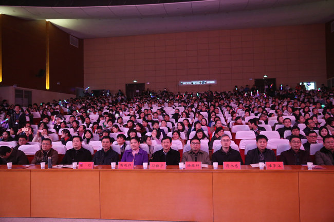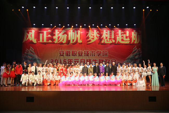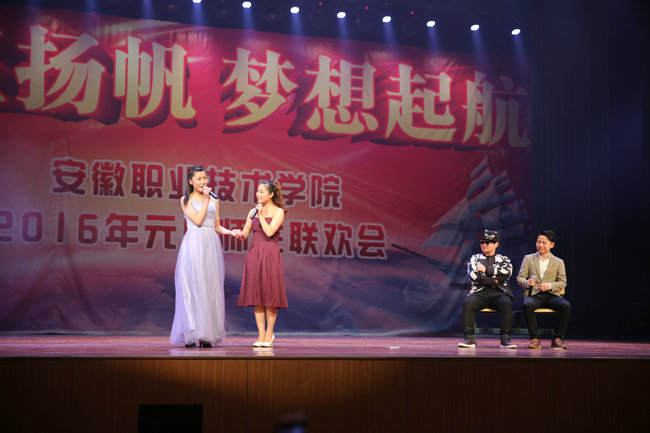 本网讯(院工会通讯员 贾亮亮)12月30日下午,天气晴朗,阳光普照,学院2016年元旦师生联欢会在大学生活动中心举行。院领导孙敬华、徐振轩、陈行、蒋永忠、潘荣江以及新站区管委会教育服务处处长陶跃红,与广大师生欢聚一堂,共同观看了精彩的演出。
