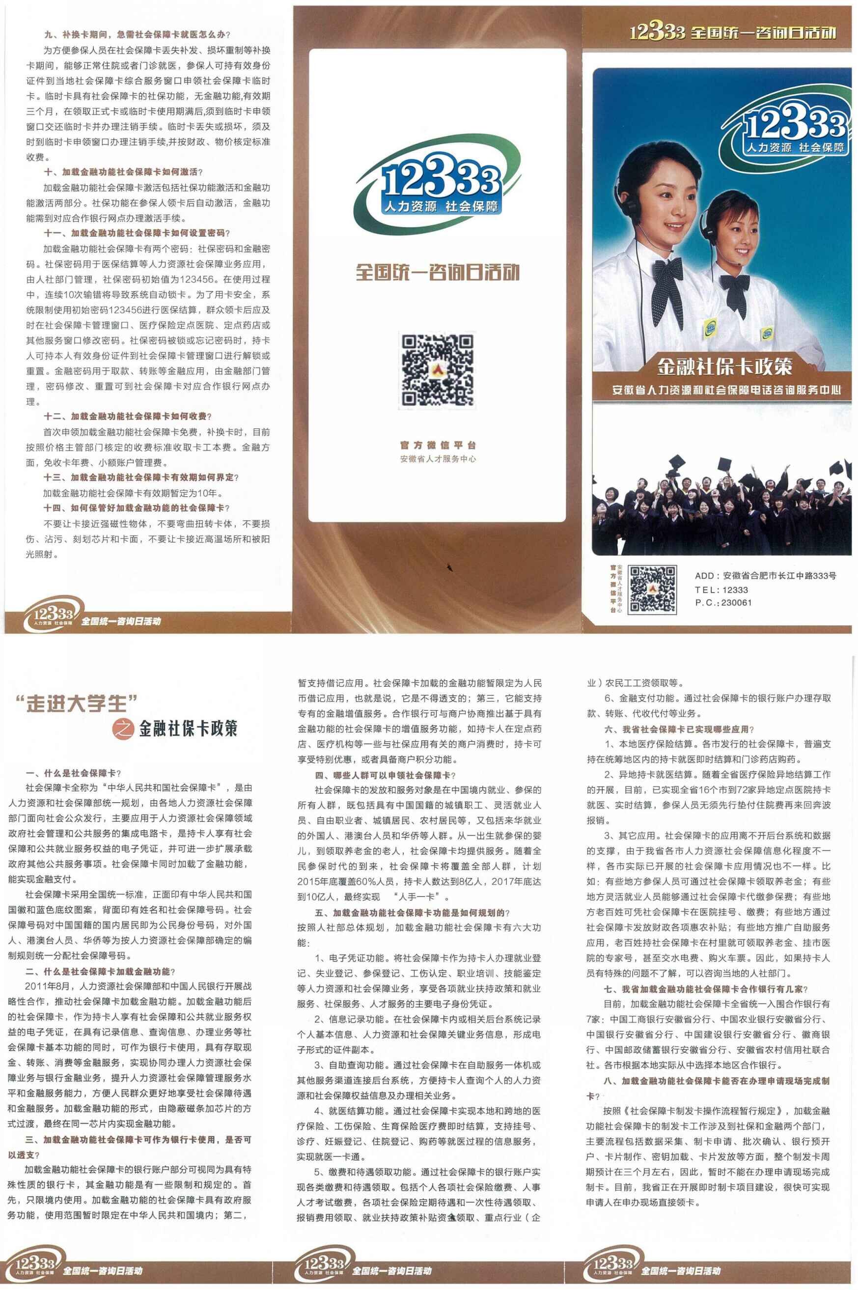 由学院委托农业银行龙岗支行代办的在编职工(截止到2015年7月前入编的)金融社保卡已近于近期完成制卡,请各部门指派专人统一领取本部门在编职工金融社保卡(离退休职工由离退办统一领取)。金融社保卡包括社保卡功能和金融功能两部分。领卡后,如需激活社保卡功能,请教职工本人携带身份证或委托他人(需要携带委托人和代办人的身份证)到合肥市内农业银行长江路支行、城西支行、明珠支行(十一中旁边)网点办理社保卡社保功能激活(金融功能激活请在办理社保功能激活期间咨询农行办理窗口)。